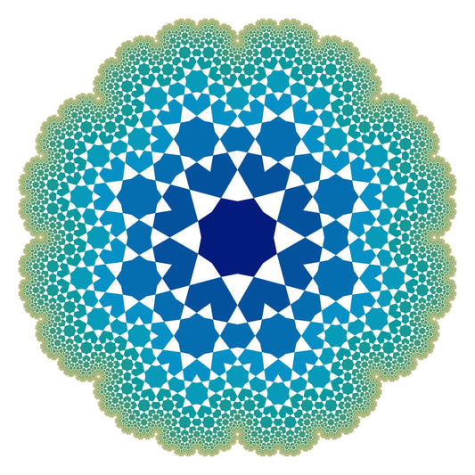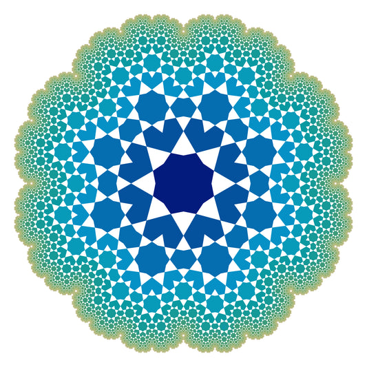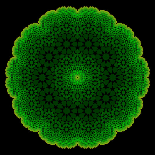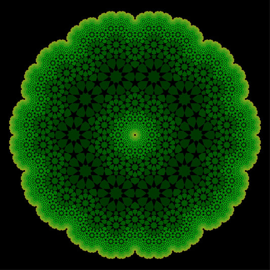 The Infinity Blooms series (part of the larger Fractal Islamic Patterns series) includes images with a complex, flower-like boundary. Though made only of straight lines, they appear curved and organic.