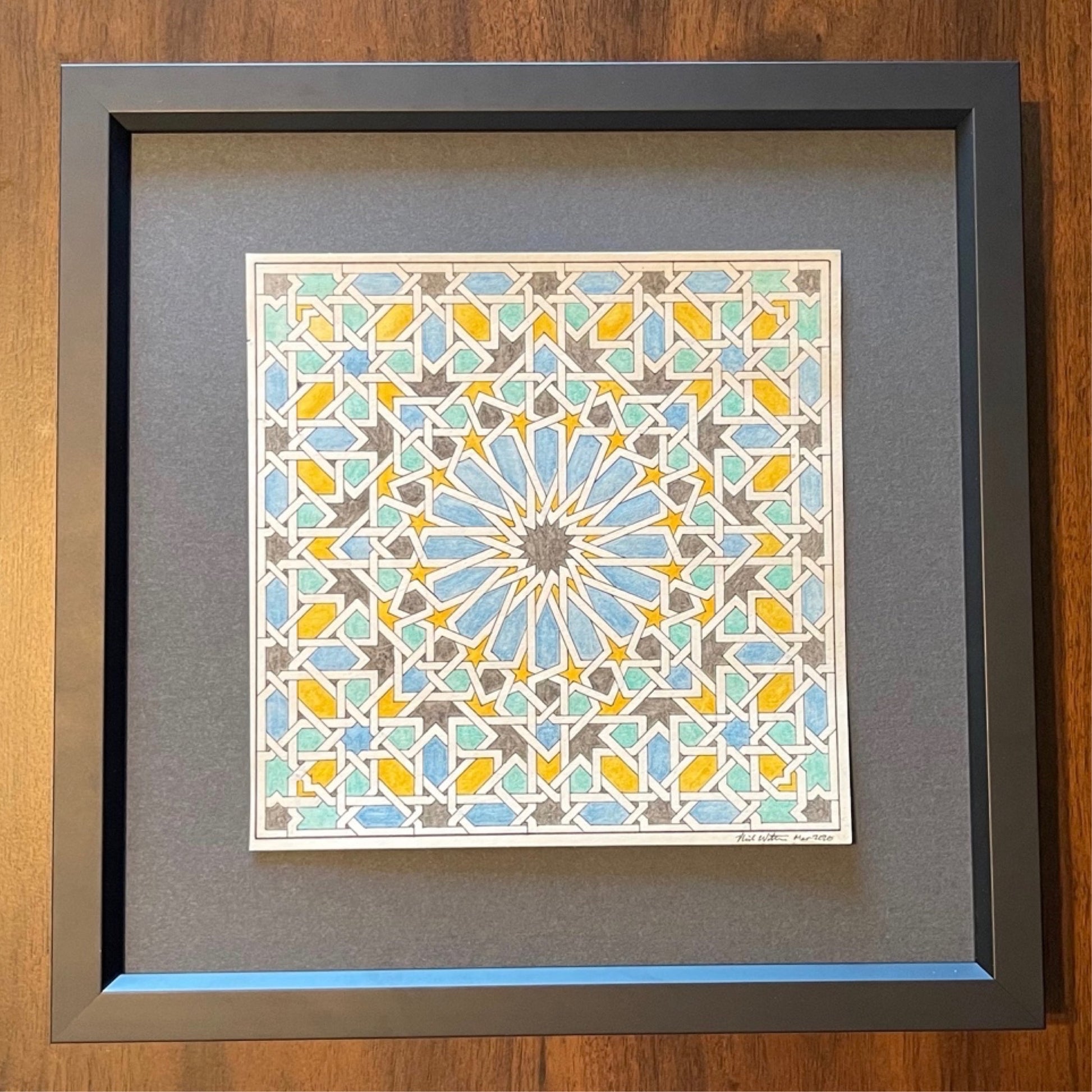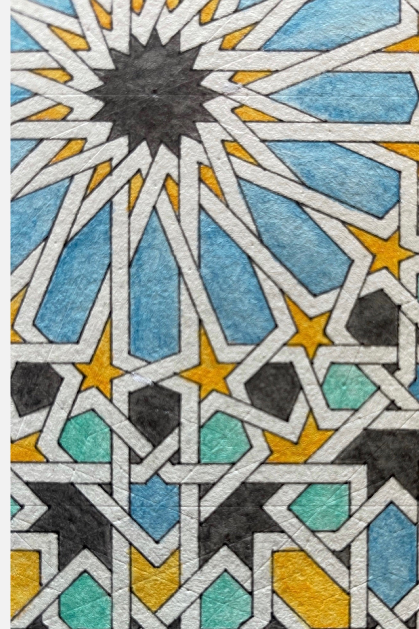 The magnificent Alhambra palace in Granada, Spain is considered by many to be one of the pinnacles of Islamic decorative art. My visit there in 2019 inspired me to reproduce this exquisite pattern from the Torre de la Cautiva (Tower of the Captives). I named it "Alhambra I" because I am sure I will tackle other patterns from my hundreds of photos in the future.