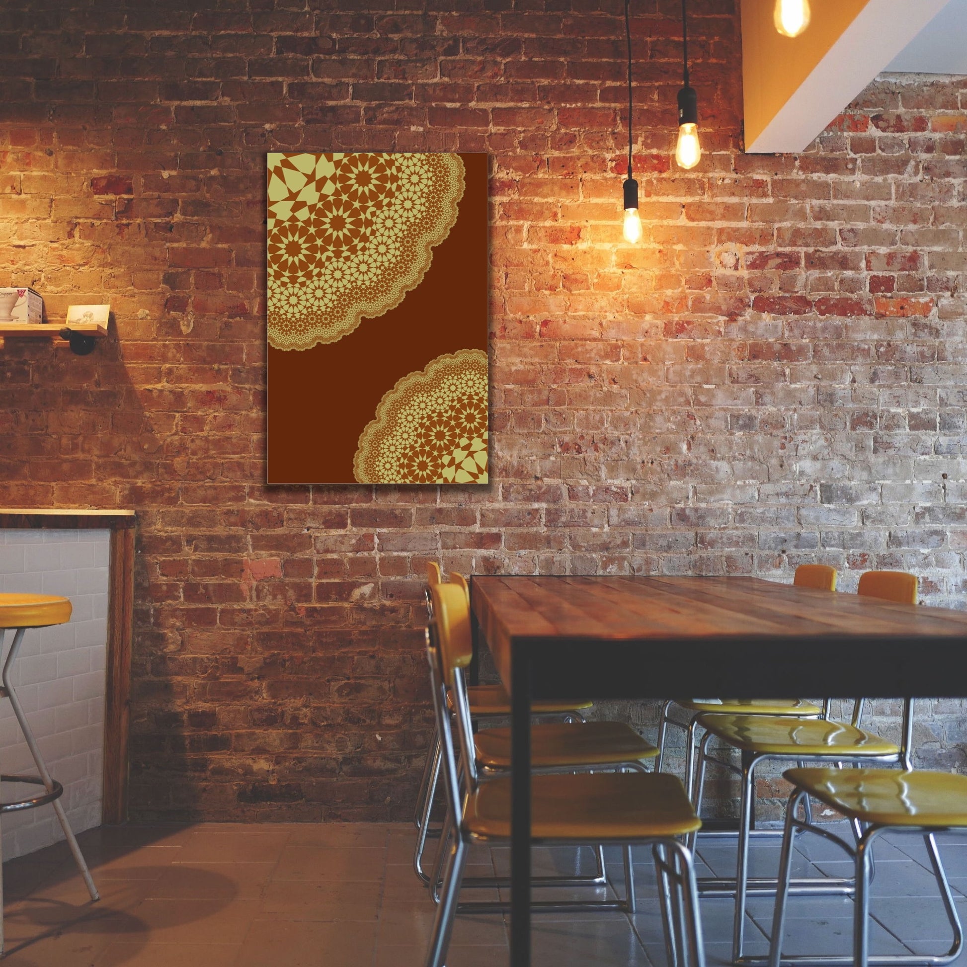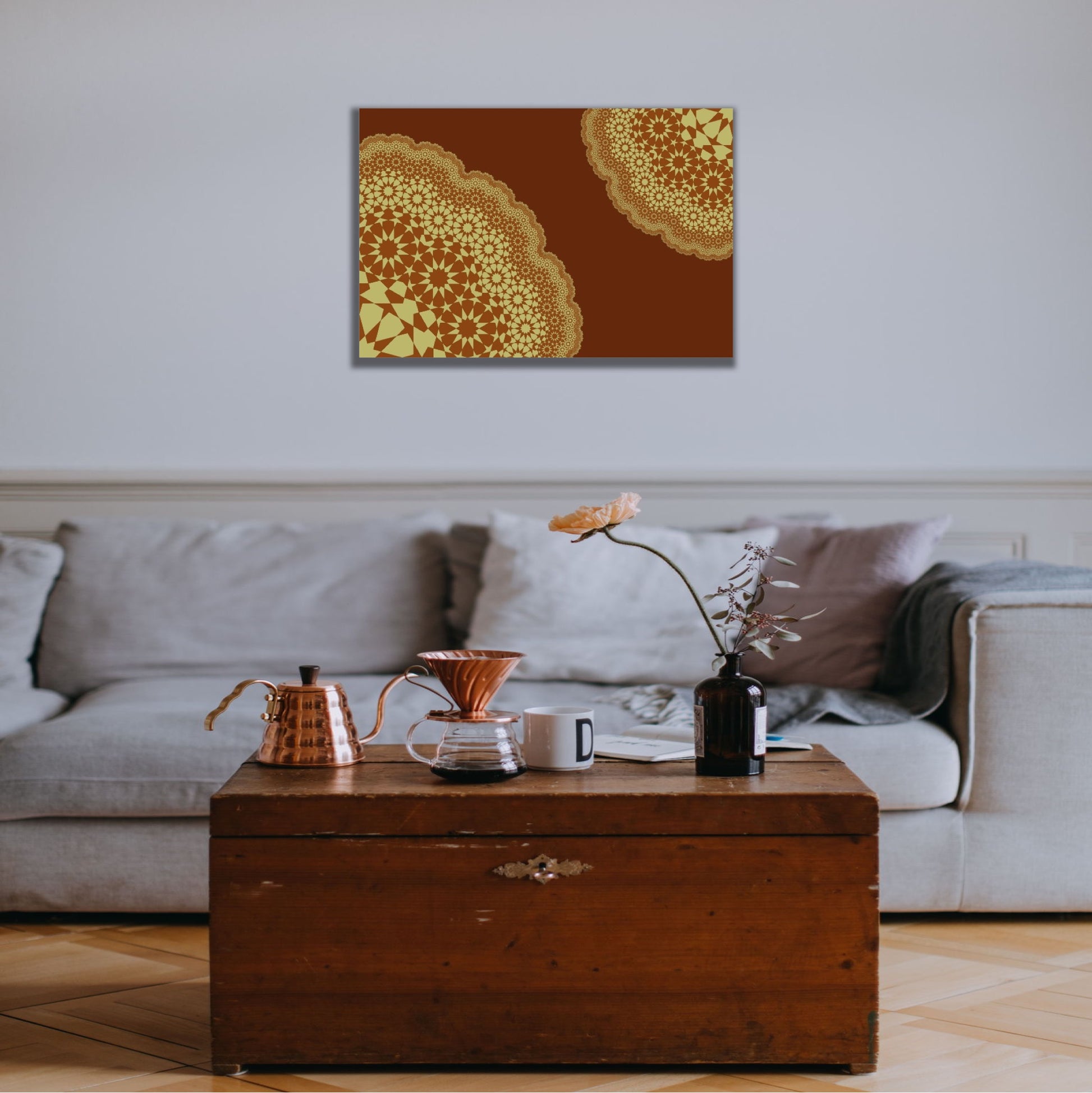 The foundational pattern for Diatoms 12 is a 12-fold outward Fractal Islamic Pattern. Two patterns of different scales are arranged in opposite corners. The overall effect is one of shapes partially seen, partially hidden, as if floating on a slide under a microscope.