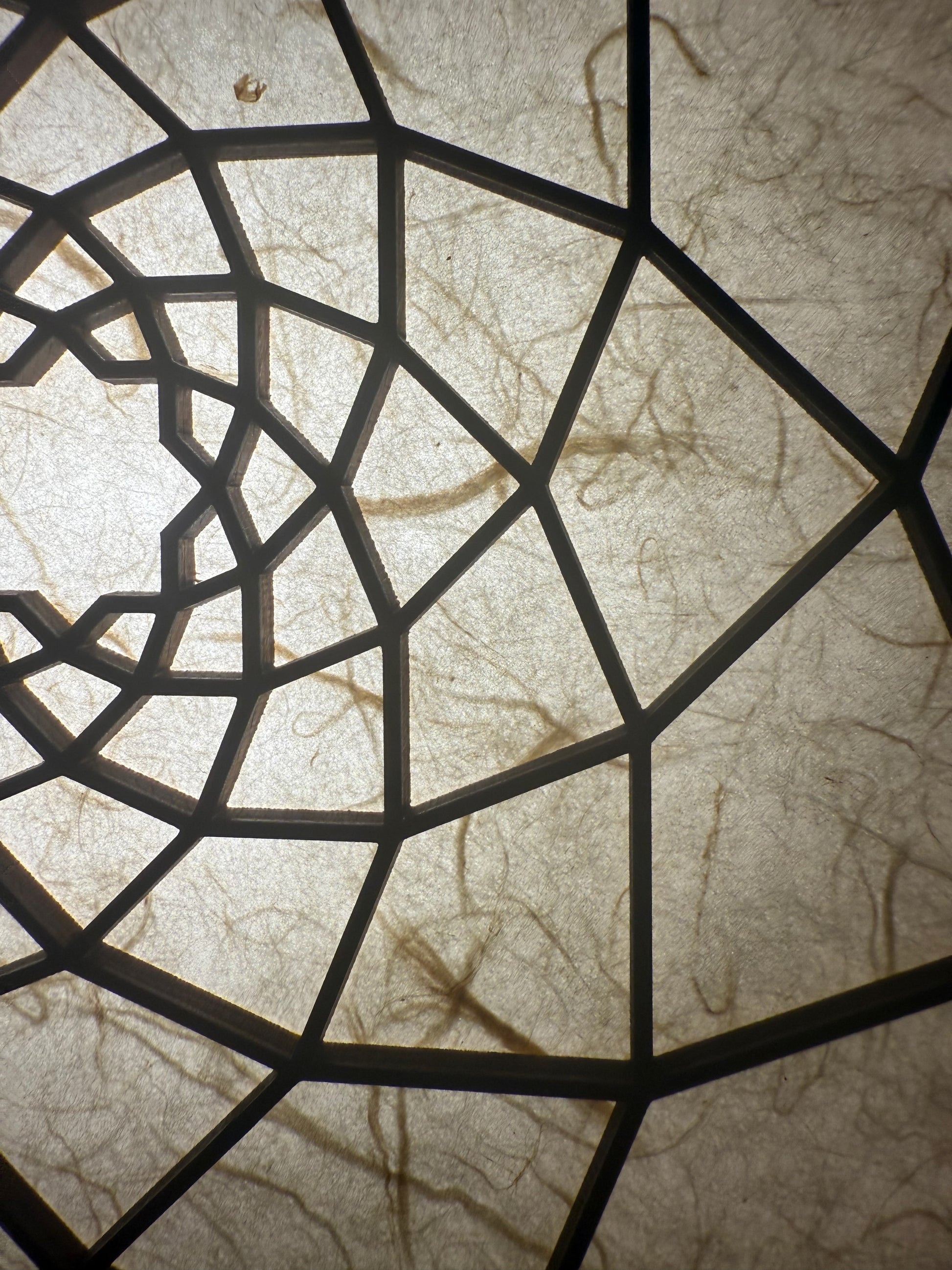 Each lamp is hand-made to order, using plywood with a basswood core and surface veneer of natural cherry, as well as genuine Japanese washi paper made from mulberry silk. (This is the same paper that is used to fashion traditional shoji screens found in Japanese architecture.)