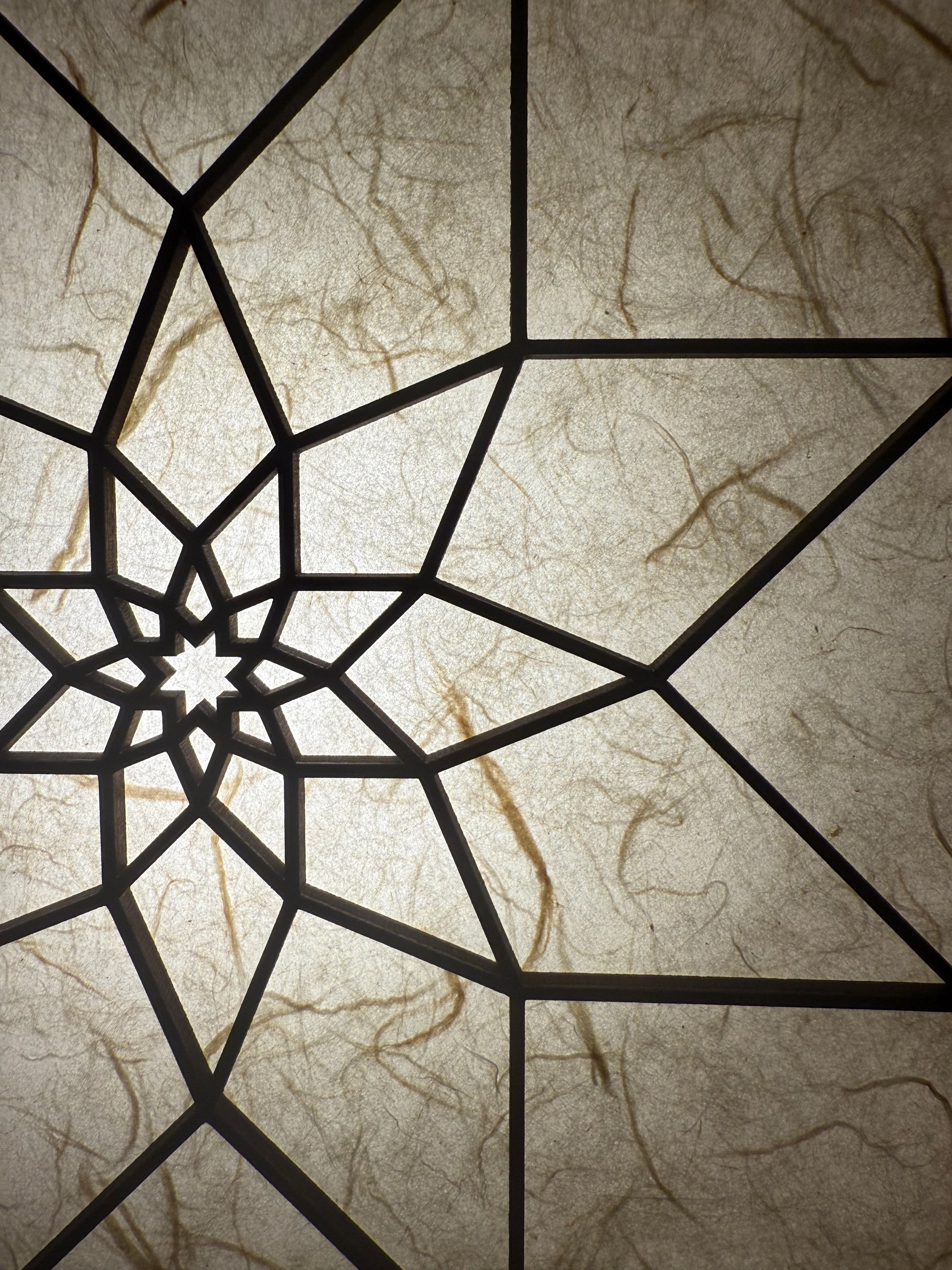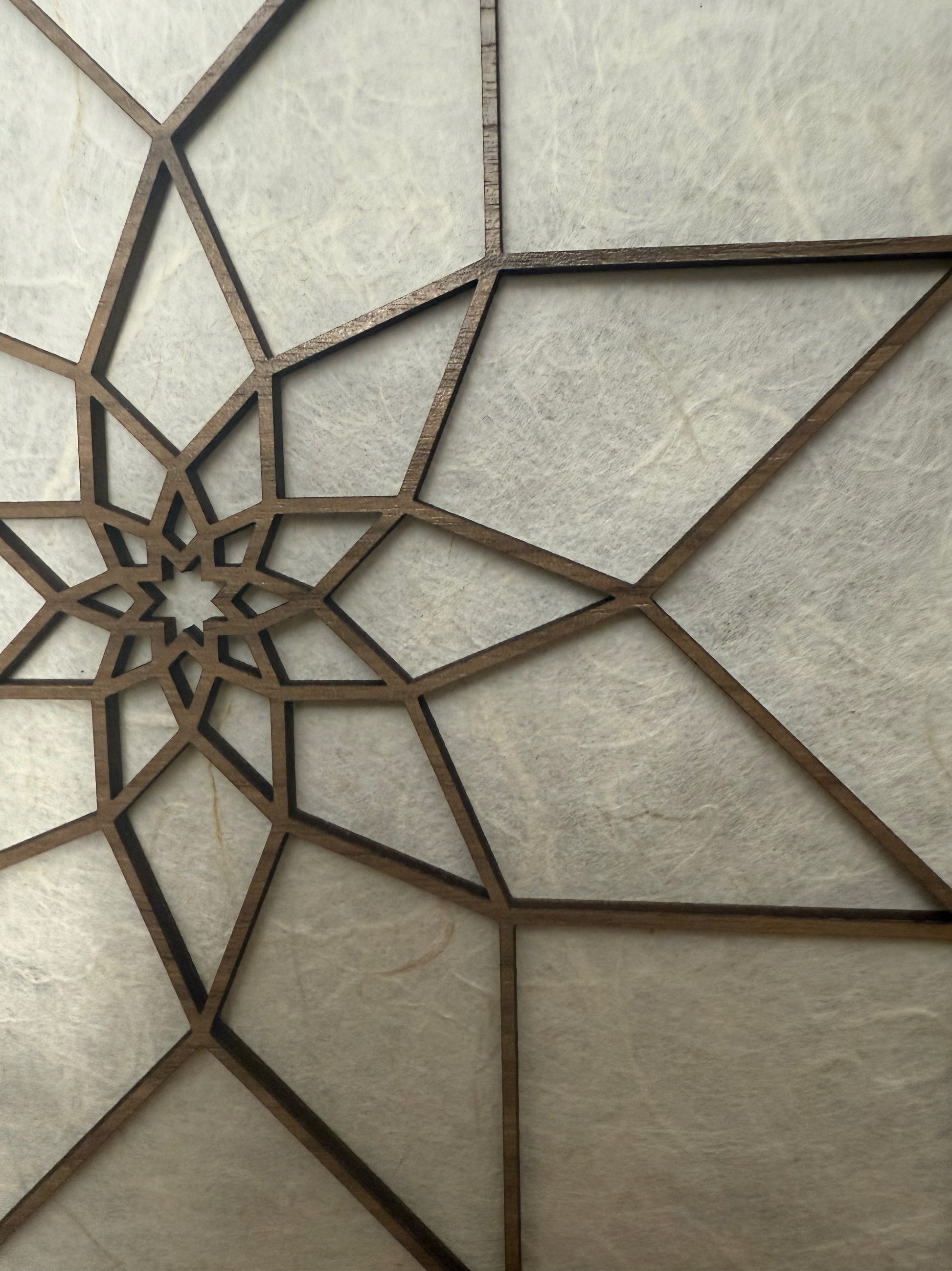 Each lamp is hand-made to order, using plywood with a basswood core and surface veneer of natural cherry, as well as genuine Japanese washi paper made from mulberry silk. (This is the same paper that is used to fashion traditional shoji screens found in Japanese architecture.)