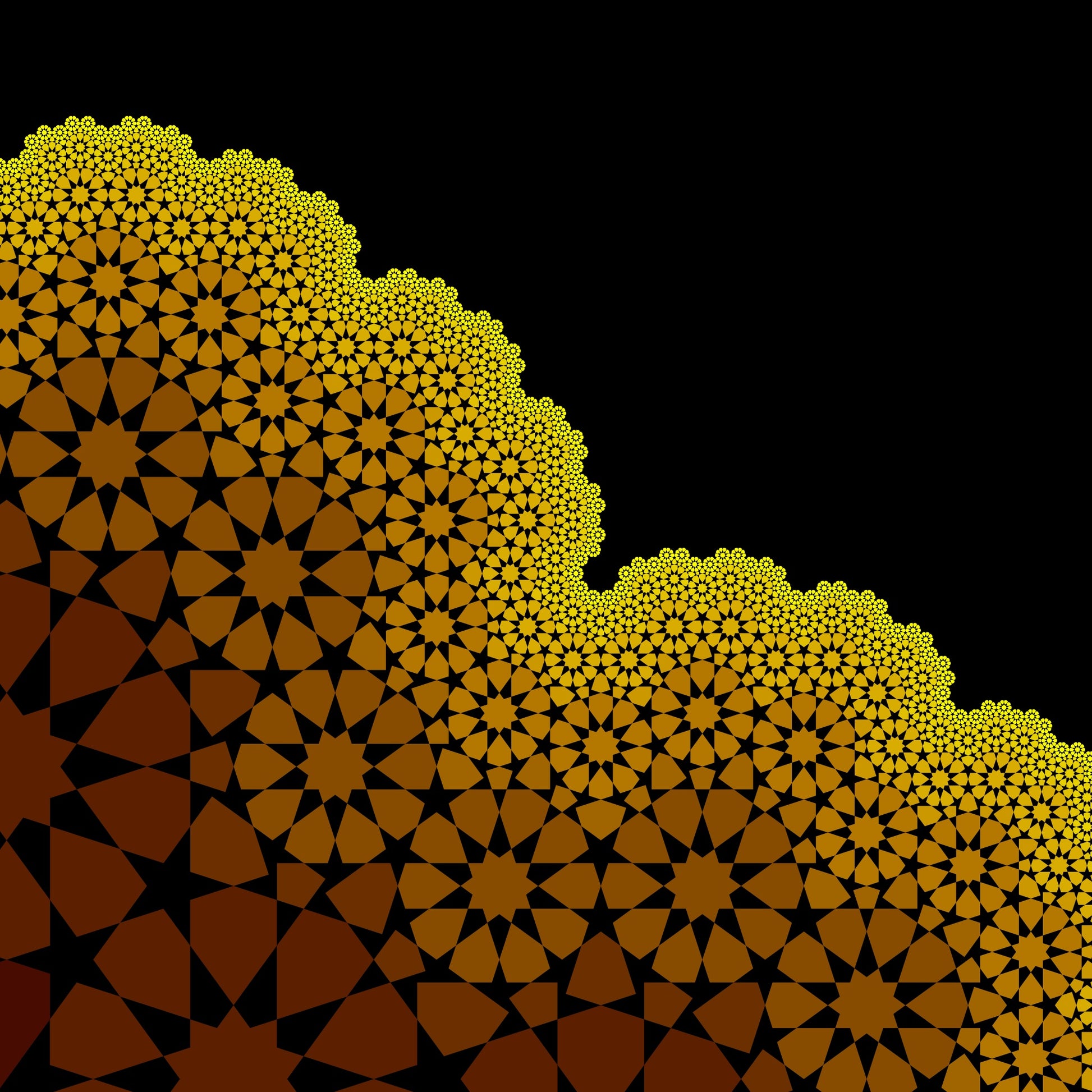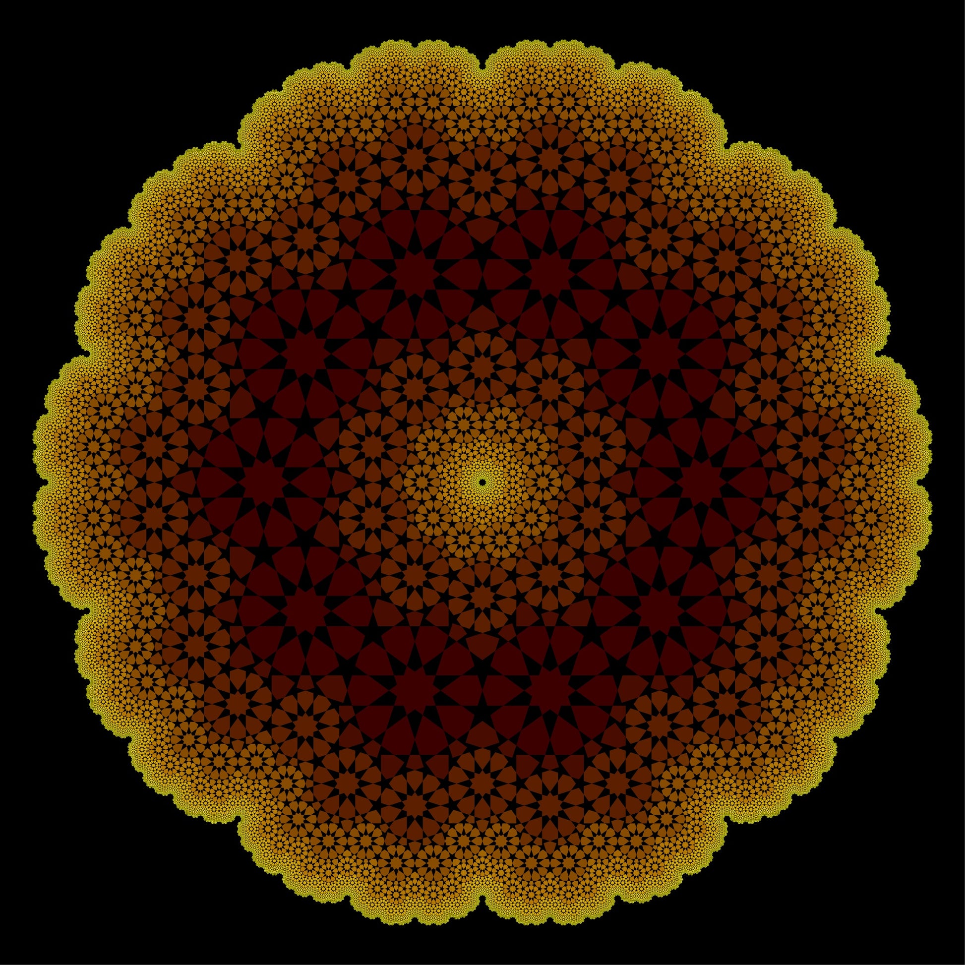 Infinity Bloom 10 has geometry centered around 10-fold symmetry. It appears in the number of petals in each rosette, as well as the number of rosettes in the largest ring.