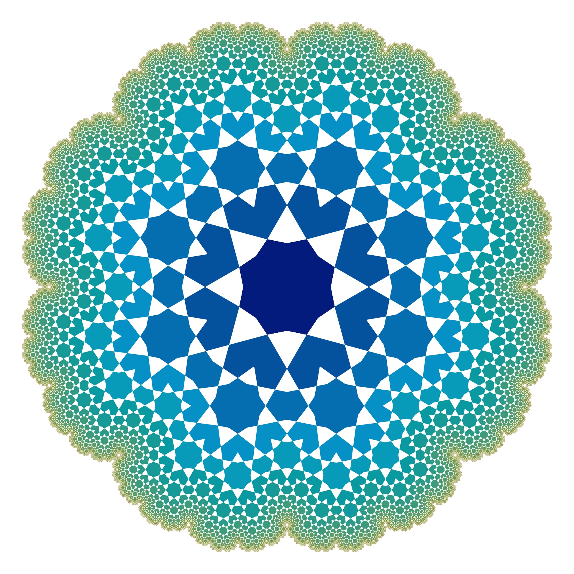 Infinity Bloom 8 is the first Fractal Islamic Pattern I ever designed. It is a pattern which, like its companion piece, Starburst 8, prominently features the eight-fold rosette commonly found in art and architecture throughout the Islamic world.