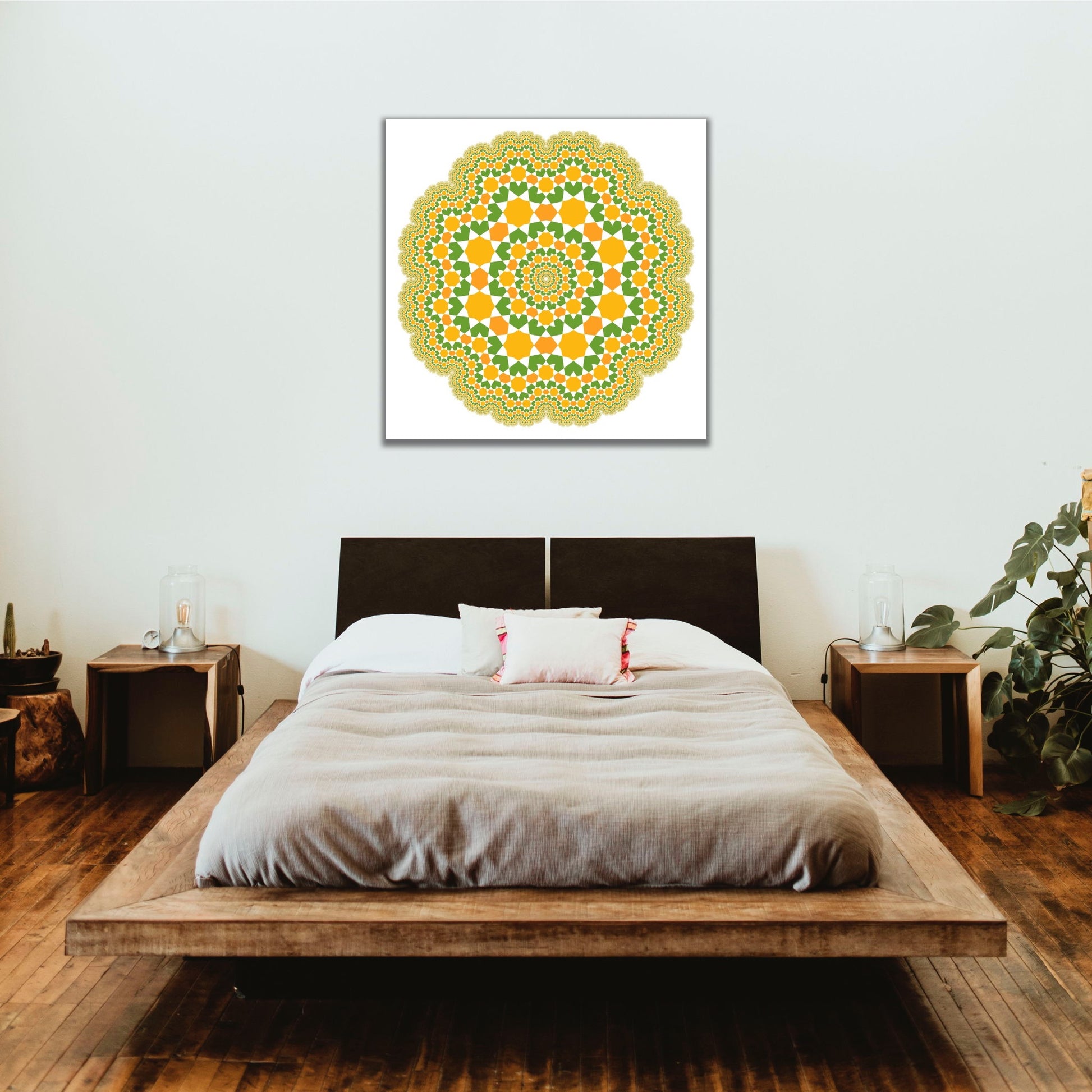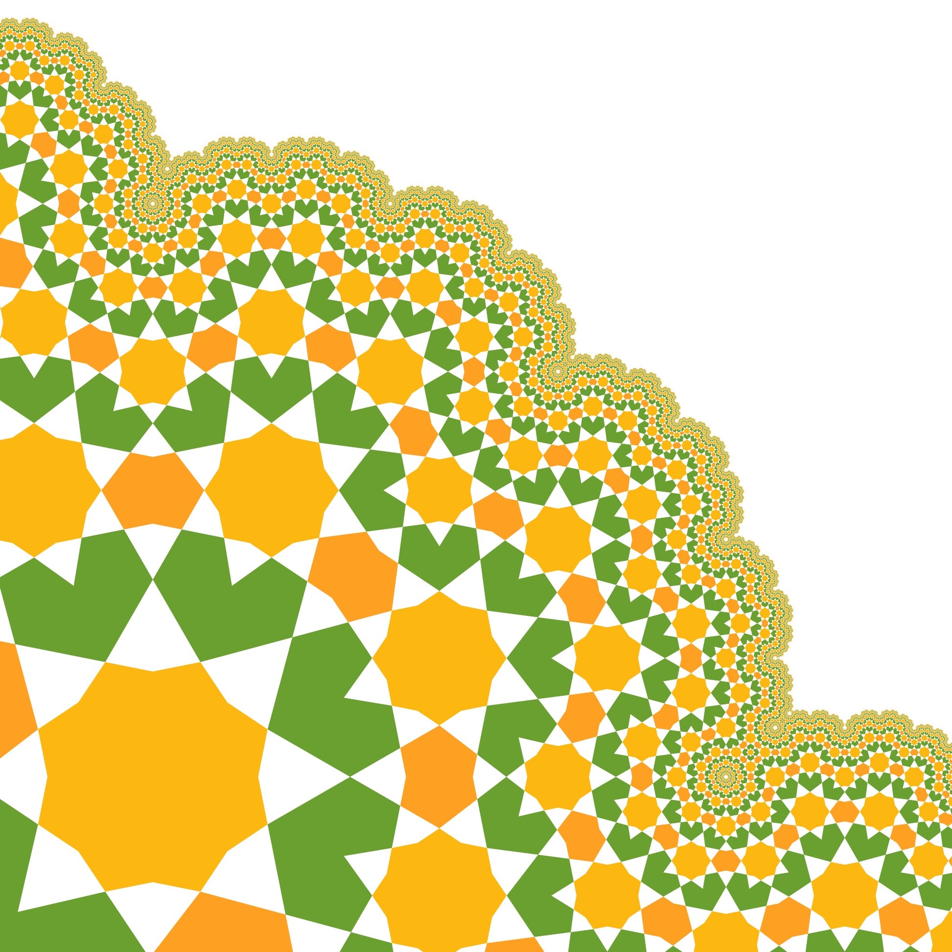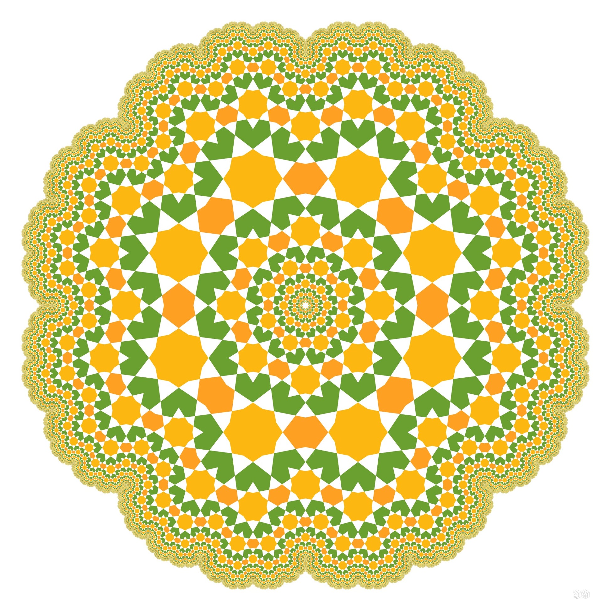 The green and gold color scheme was chosen to highlight the “rings” of octagonal stars, which become ever more convoluted towards the edges of the piece.