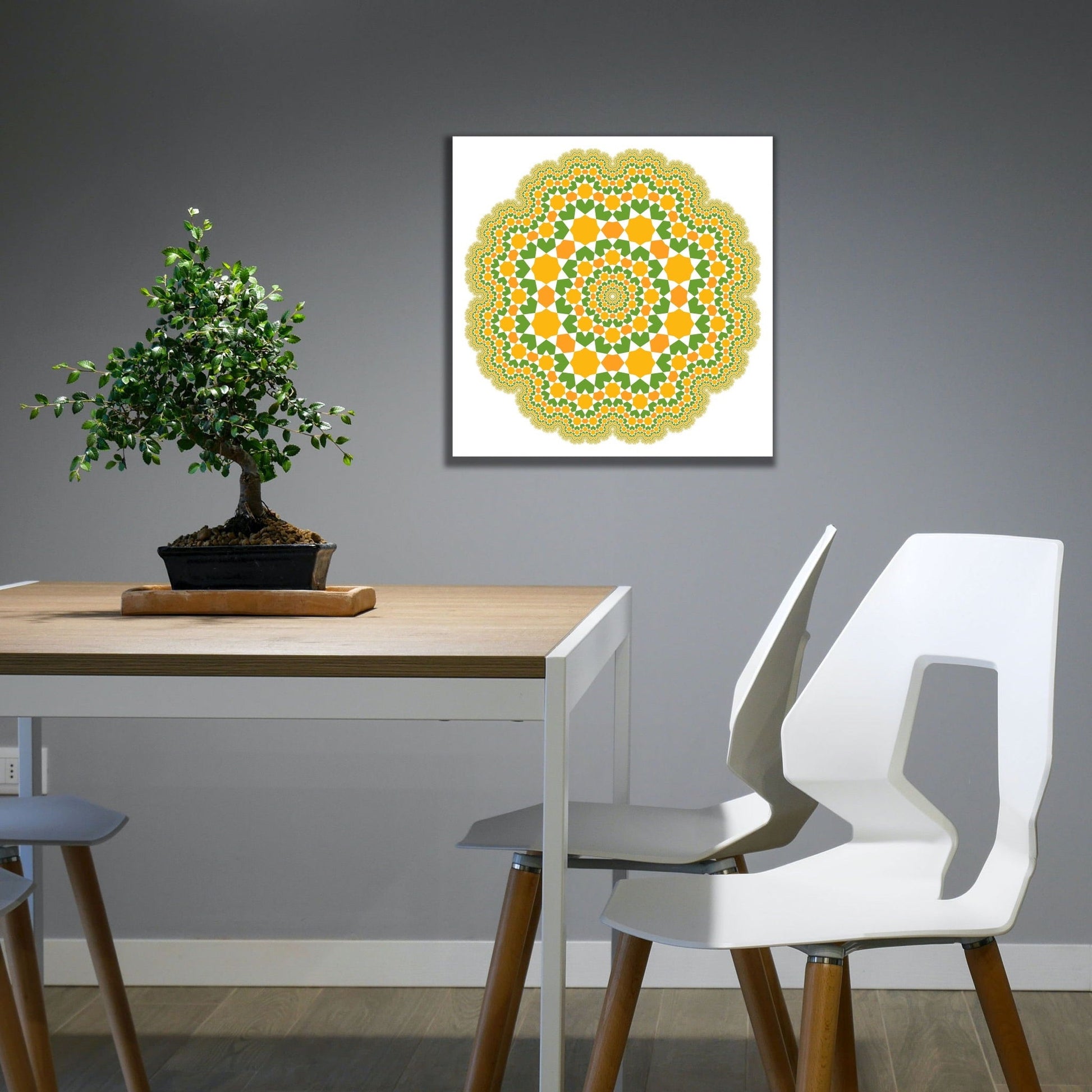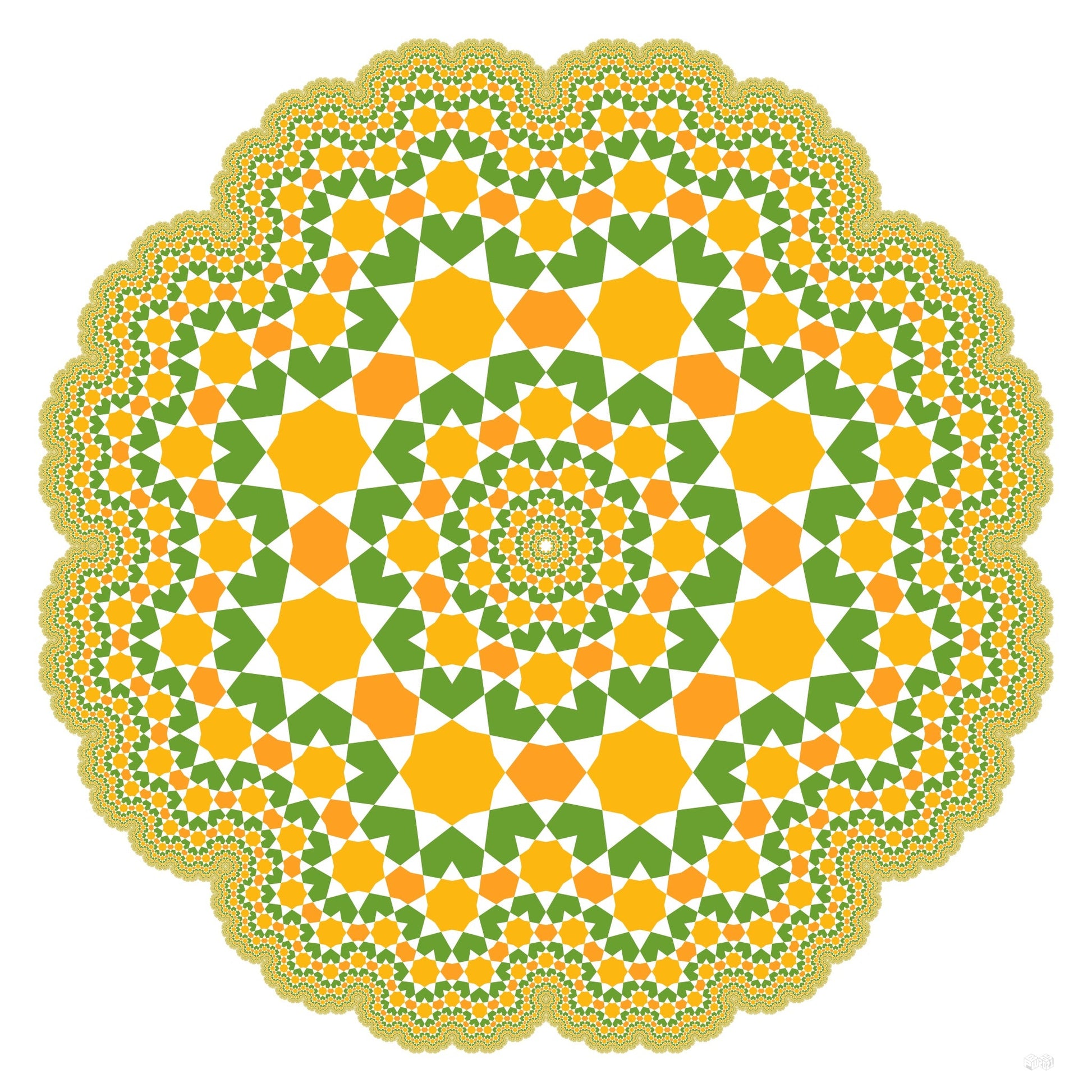 The green and gold color scheme was chosen to highlight the “rings” of octagonal stars, which become ever more convoluted towards the edges of the piece.