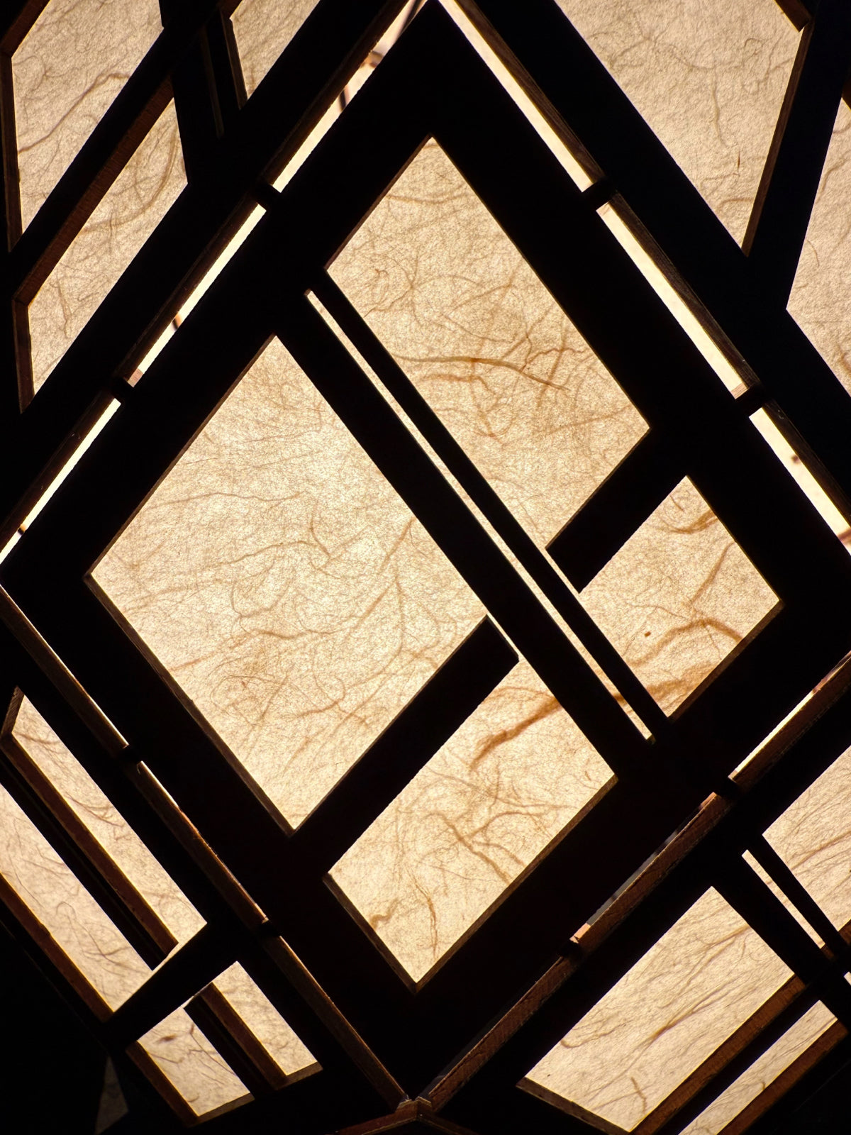 Each lamp is hand-made to order, using plywood with a basswood core and surface veneer of natural cherry, as well as genuine Japanese washi paper made from mulberry silk. (This is the same paper that is used to fashion traditional shoji screens found in Japanese architecture.)