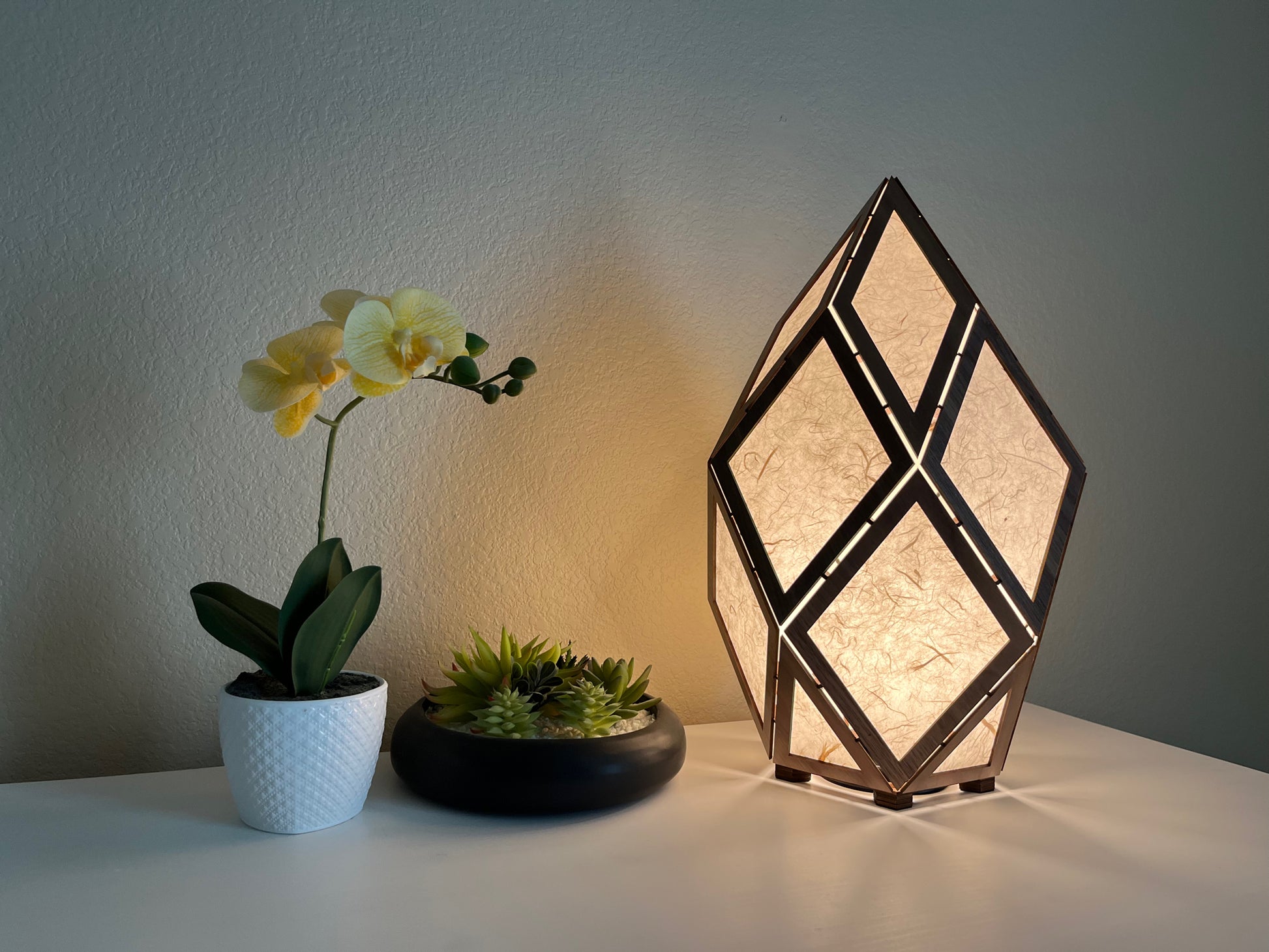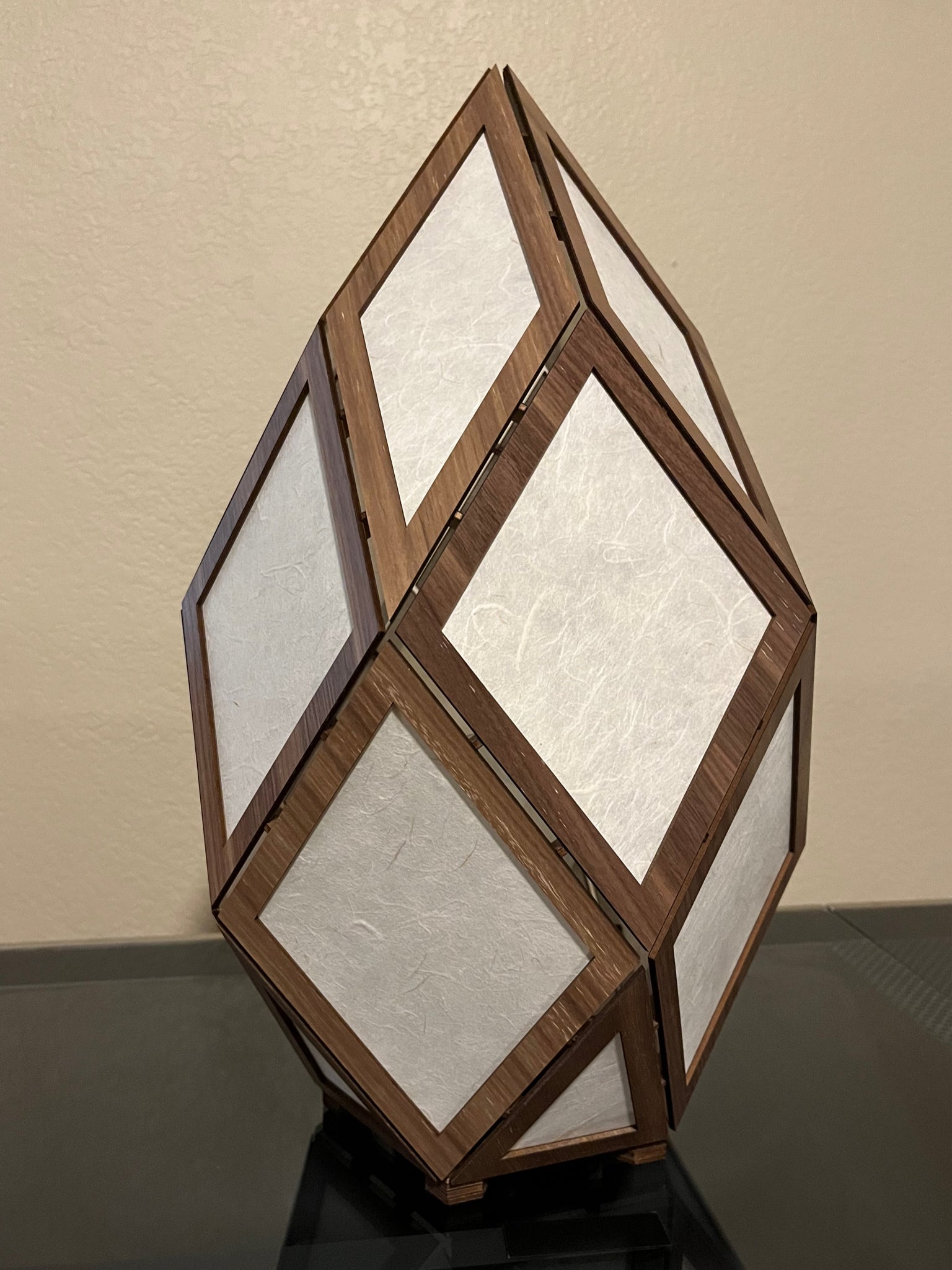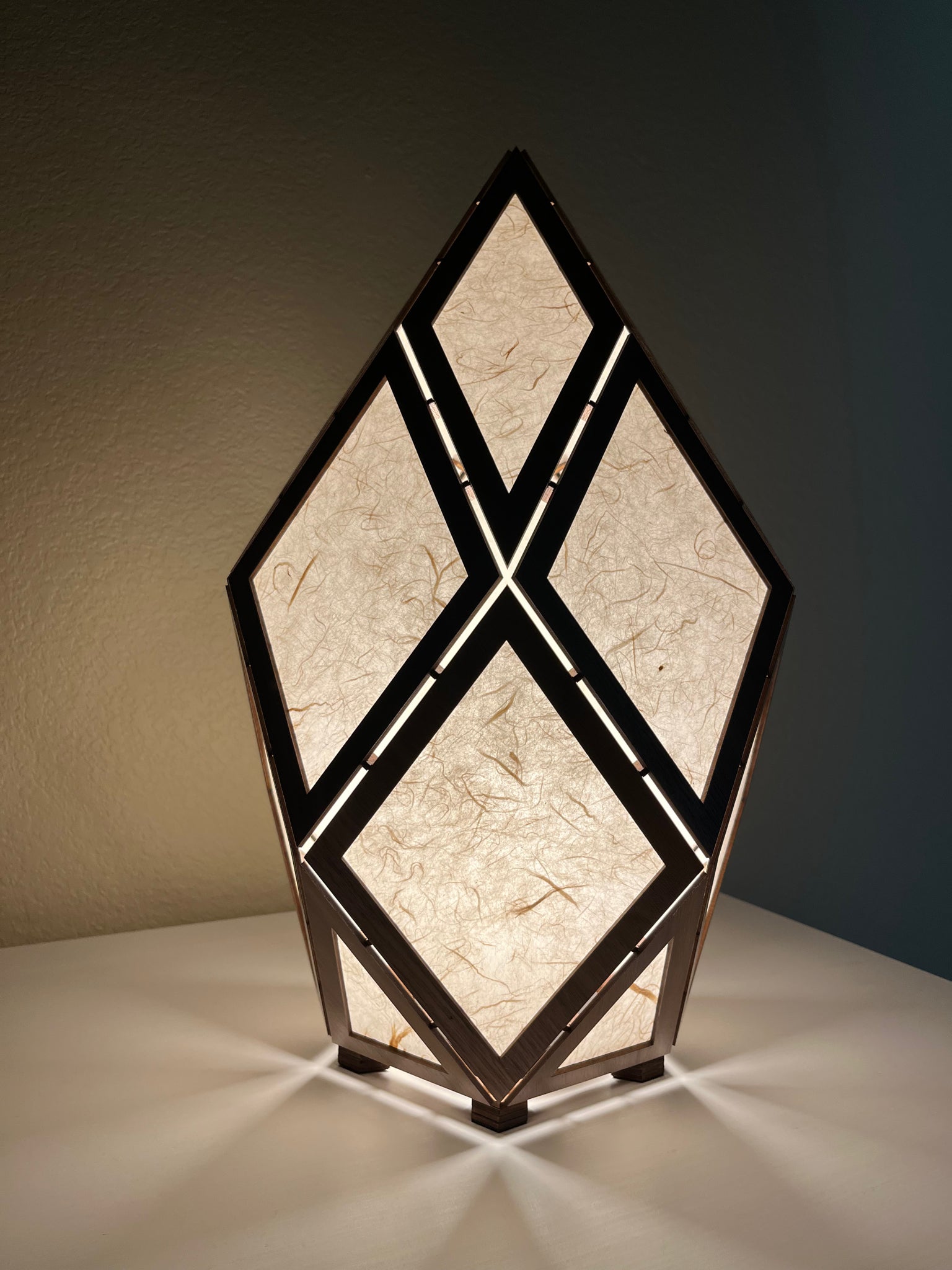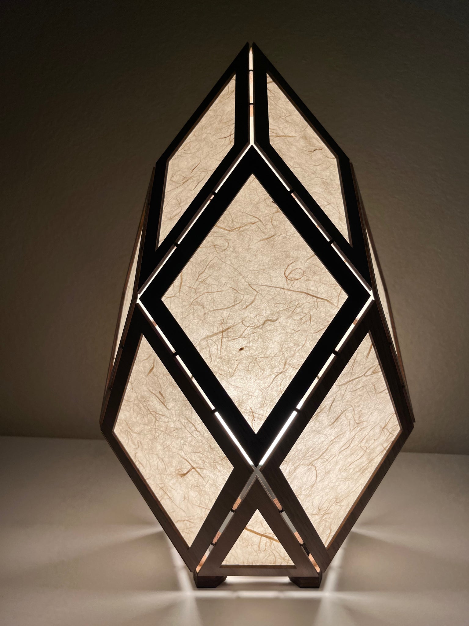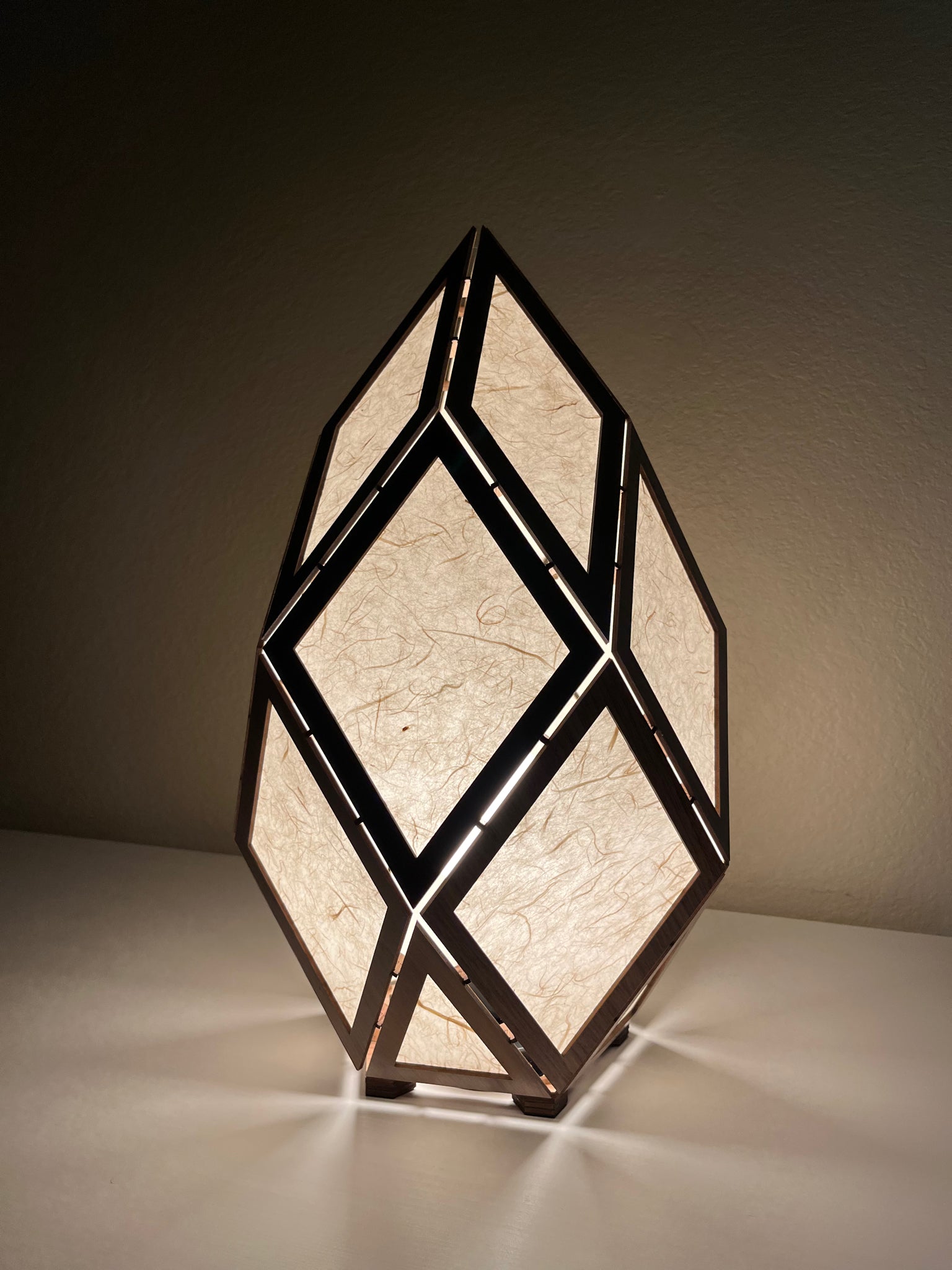The Jewel Lamp series explores a particular set of shapes (for the math nerds out there: polar zonohedra) that have symmetrical, faceted, shapes with points at each end.