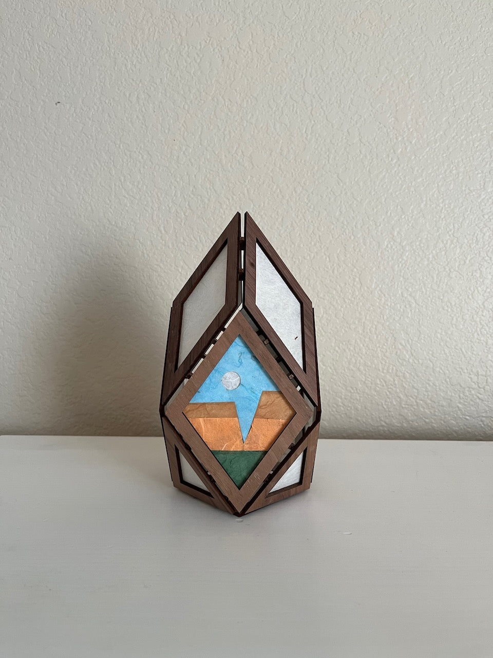 - Scene - a miniature scene of a full moon over red rock mesas (the rest of the faces are normal off-white washi paper)