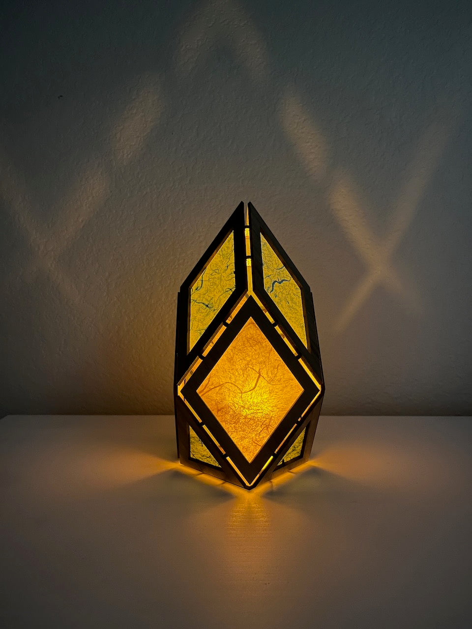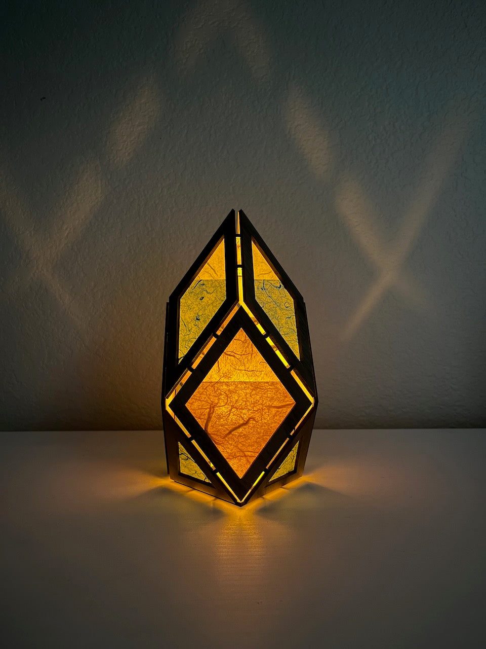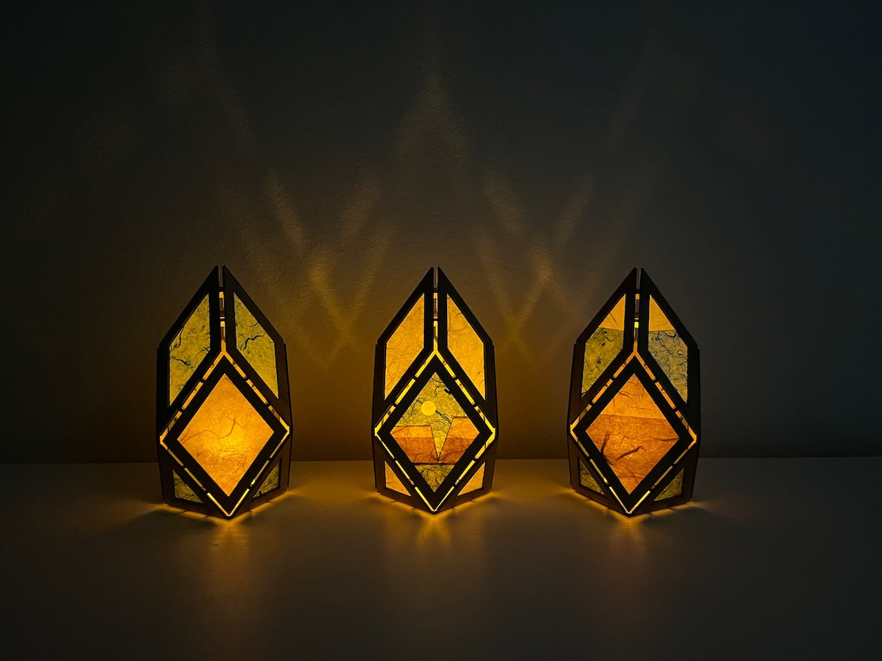 Beautiful in their own right as small sculptures, the real magic happens when the lamps are turned on. The light fills the inset washi paper in each face with a golden glow, instantly creating a soothing, meditative ambiance in any room.