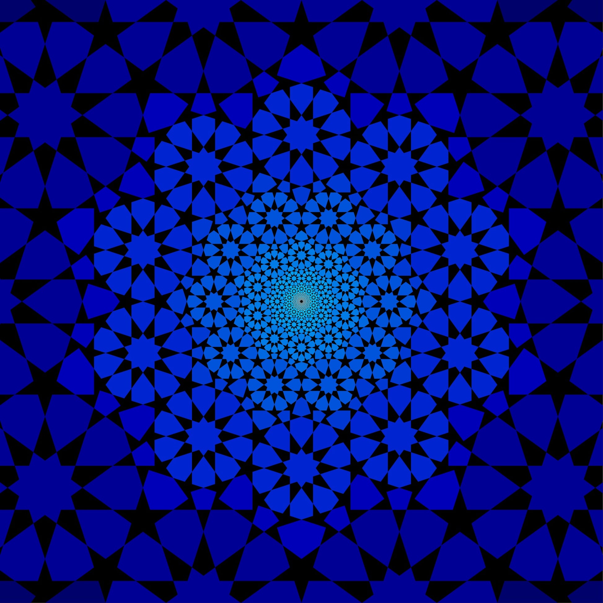 Gradated shading creates the illusion of a back-lit glow, drawing viewers’ eyes strongly into the center. The overall impression is of an outwardly expanding explosion, or an inwardly contracting tunnel, depending on the viewer and angle.