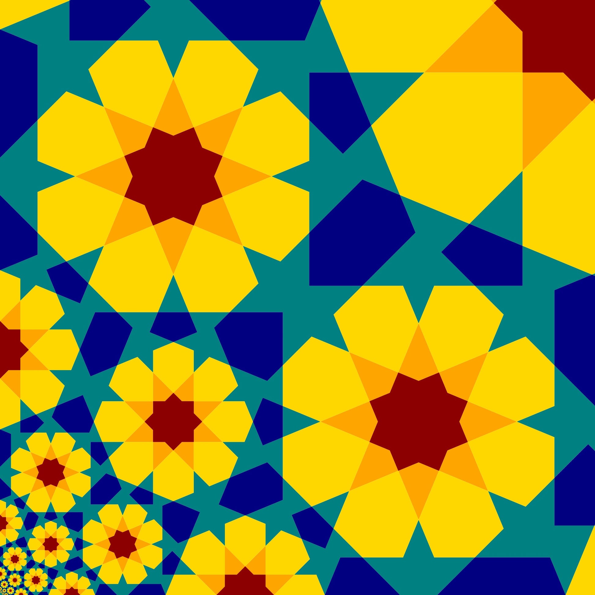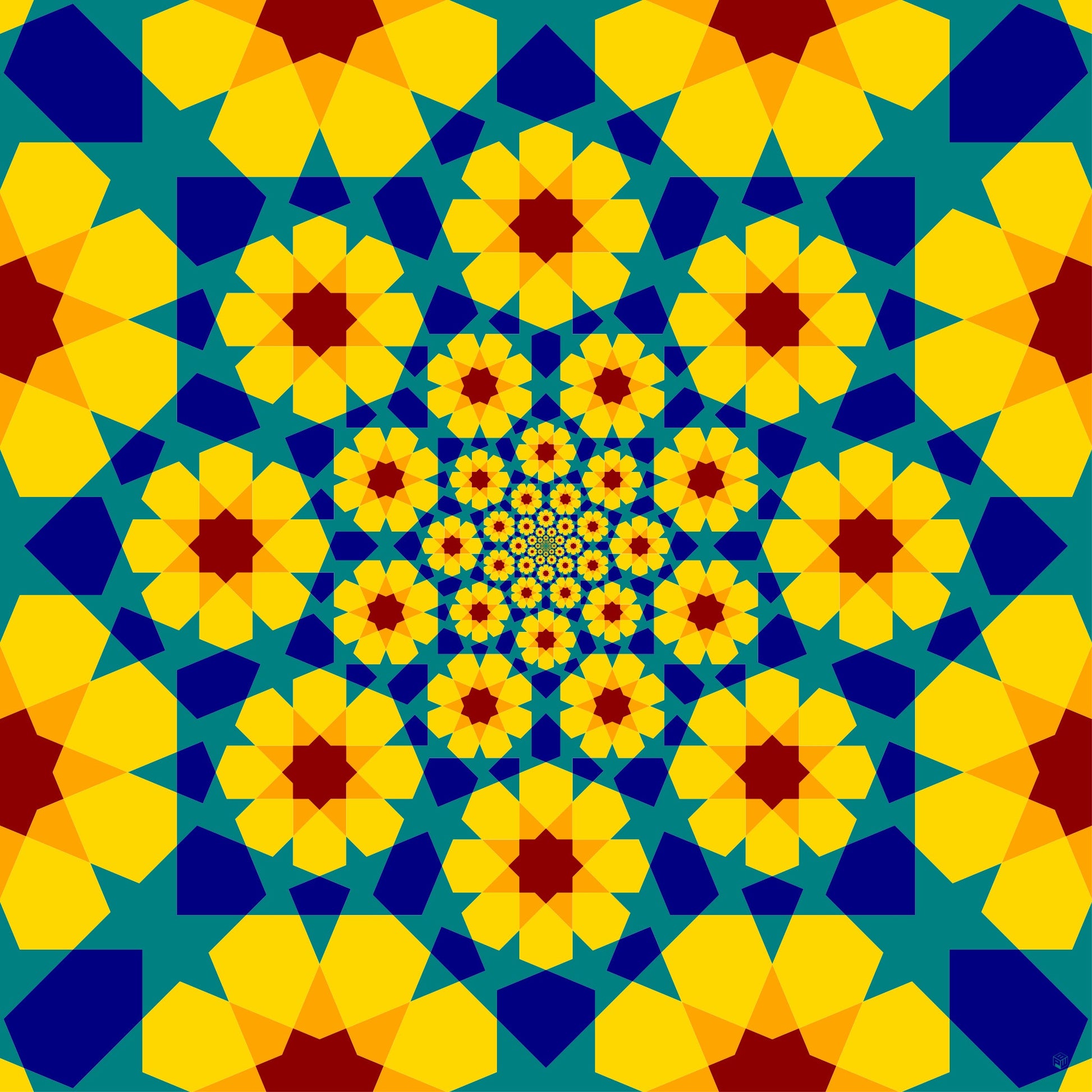 Starburst 8 is the second Fractal Islamic Pattern I ever designed. It is a pattern which, like its companion piece, Infinity Bloom 8, prominently features the eight-fold rosette commonly found in art and architecture throughout the Islamic world.